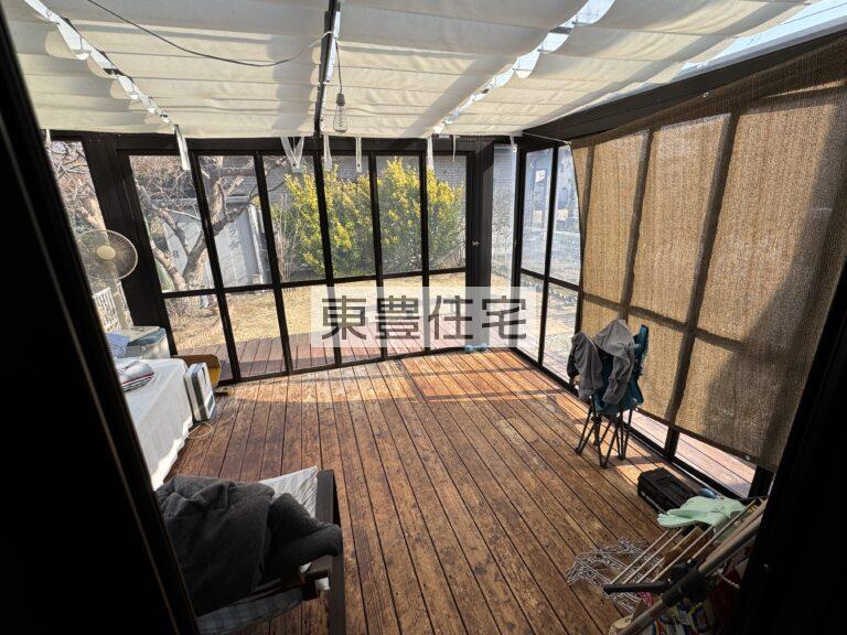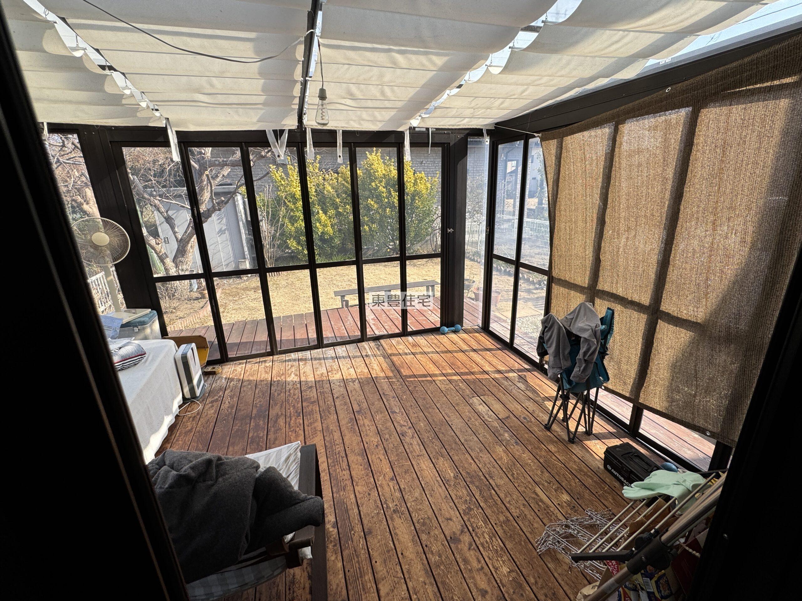 サンルームのついた広々ウッドデッキ
