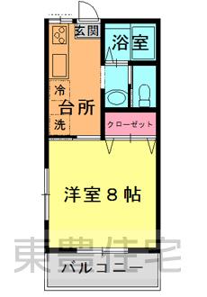 | 間取り | ワンルーム(洋室8帖・台所・浴室・トイレ) | ||