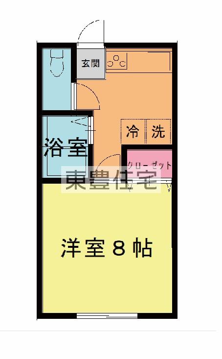 | 間取り | ワンルーム(洋室8帖・台所・浴室・トイレ) | ||